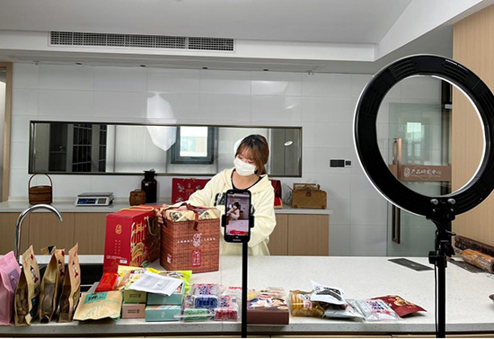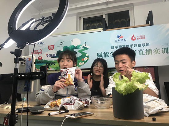 為了讓學(xué)生感受當(dāng)下電商企業(yè)的真實(shí)銷售場(chǎng)景,學(xué)校聘請(qǐng)杭州娛未文化傳媒有限公司的實(shí)戰(zhàn)專家閆程琳,為學(xué)生們開展拍攝美食視頻的新媒體實(shí)戰(zhàn)運(yùn)營培訓(xùn)。