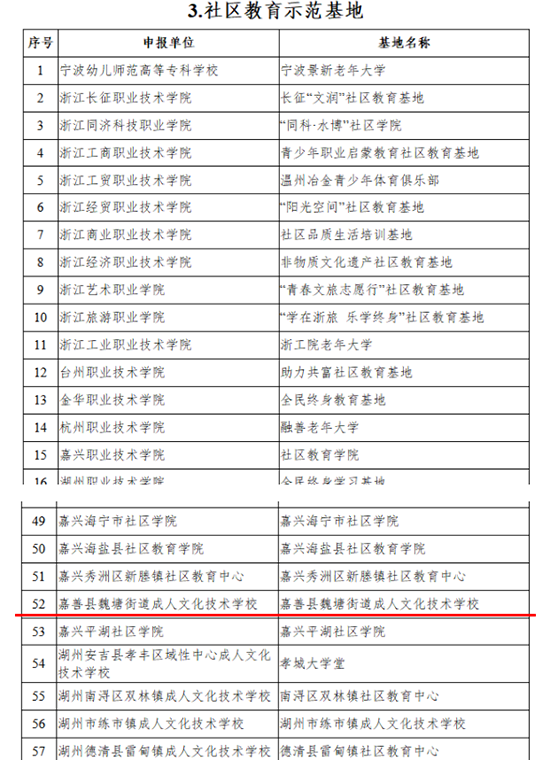 2022年,魏塘成校在教育局和魏塘街道領導的關心支持下,錨定目標,踔厲奮進,一鼓作氣,成功創(chuàng)建成浙江省現代化學校、浙江省首批優(yōu)質老年大學分校,浙江省社區(qū)教育示范基地,嘉興市十大“終身學習品牌項目”。榮譽的取得,既是上級部門對學校近幾年工作的充分肯定和鼓勵,也是學校近幾年工作的集中體現和標志性成果,凝聚著全體教職工的智慧和汗水。