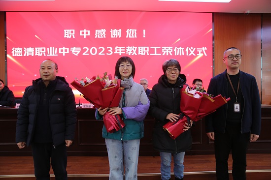 徐徐清風育桃李,一顆丹心照杏壇。為表達對教師的關懷、關愛,以及教師職業生涯奉獻的感謝,增強教師職業榮譽感、認同感、歸屬感,2023年2月5日上午,德清職業中專在學校報告廳為朱建飛、張繼紅兩位老師舉行光榮退休儀式。學校全體教職工共同見證了這一光榮時刻,儀式由校黨委委員高陽會主持。