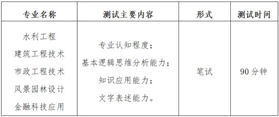 測試內容為語文、數學。考試方式為筆試,語文、數學滿分分值均為50分,按浙江省教育考試院2023年單獨考試招生文化考試語文、數學考試大綱標準命題。