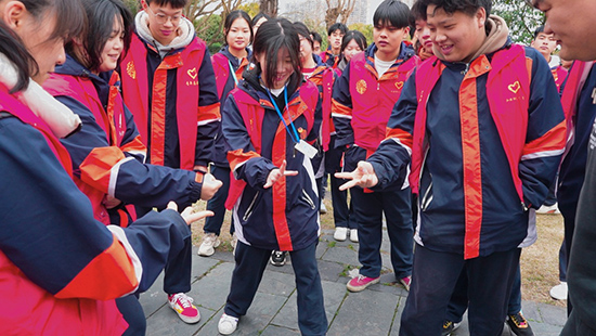 本次研學活動以破冰游戲開場,大家分為4組進行PK,“花開花落”“海陸空”“合作取水”等游戲讓同學們學會協作、學會分享。活動過程中掌聲和歡呼聲不絕于耳,大家的臉上都露出了自豪的微笑!