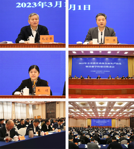 3月1日上午,2023年全省教育系統全面從嚴治黨暨清廉學校建設推進會在杭州召開。會議強調,全省教育系統要深入學習領會習近平總書記關于全面從嚴治黨的重要論述,貫徹落實二十屆中央紀委二次全會和省紀委十五屆二次全會部署要求,推進教育系統全面從嚴治黨向縱深發展,為建設中國式現代化教育示范省提供堅強保障。省委教育工委副書記,省教育廳黨組書記、廳長毛宏芳,省監委委員葉強出席會議并講話,省委教育工委專職副書記、省教育廳黨組副書記陳春雷主持會議,省委教育工委委員、省教育廳黨組成員、省紀委省監委駐省教育廳(省委教育工委)紀檢監察組組長王健部署紀檢監察工作。