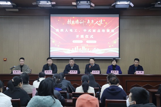 聚焦民生福祉,推動(dòng)共同富裕。為增強(qiáng)殘疾人就業(yè)技能,進(jìn)一步提高殘疾人群體就業(yè)率,3月4日,海寧技師學(xué)院與海寧市殘聯(lián)共同舉辦“殘疾人電工、中式面點(diǎn)培訓(xùn)班”開(kāi)班儀式。海寧市殘聯(lián)副理事長(zhǎng)沈豐洲,海寧技師學(xué)院院黨委書(shū)記、院長(zhǎng)陳海鋒,海寧市殘聯(lián)就業(yè)服務(wù)中心主任楊艷萍,海寧技師學(xué)院智能制造系主任褚佳琪、烹飪旅游系主任程鋒出席開(kāi)班儀式。