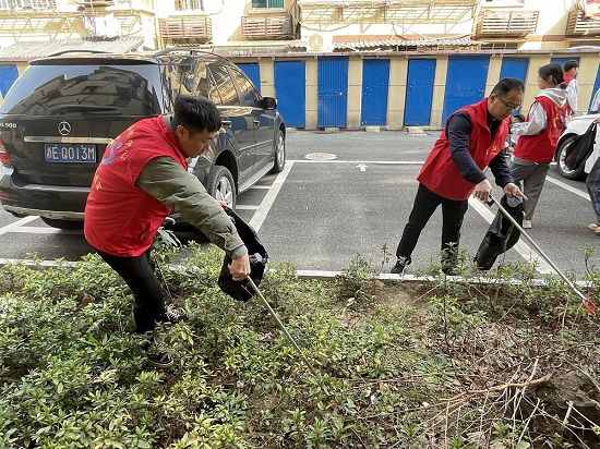 衛生組的志愿者們將社區及周圍的垃圾打掃干凈,為小區居民帶來整潔的環境。志愿者們熱情的服務態度受到了居民的稱贊。
