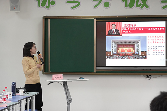華僑職業中專學校朱亮老師帶來了《雙師共導,巧練能手—客房中式鋪床實訓之甩單定位》的說課展示。朱老師緊扣“產教融合”理念、立足課堂實效、對接崗位要求,實現雙師共導優勢互補的課堂教學。