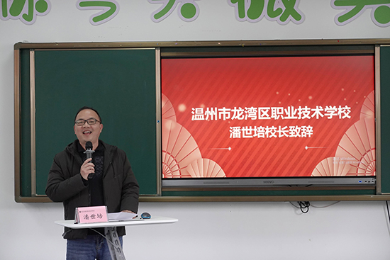 該校教學負責人潘世培致辭,他分享了學校近幾年的發展和成長,并對酒店專業的建設提出期許和更高的要求。