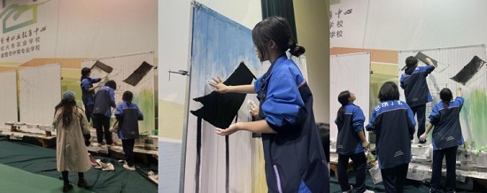 日前,諸暨市教體局下發了2023年中小學生藝術節通知,諸暨市職教中心報名參加舞蹈比賽,但舞美設計中需要多個小背景組成的一個大水墨圖案,在學校師生齊心協力下,解決了舞美設計的難題。