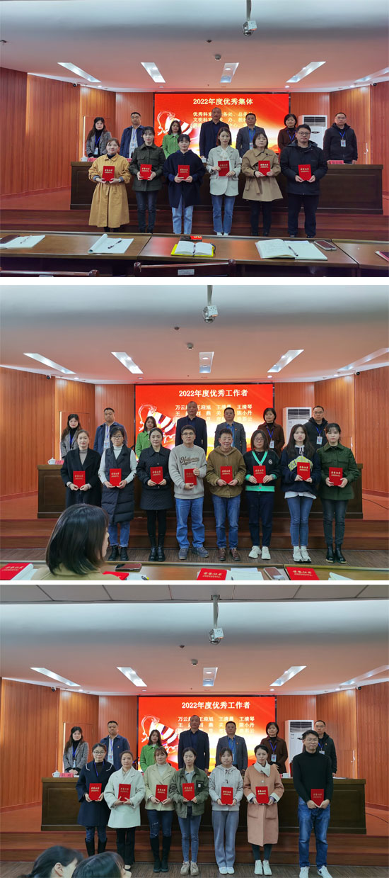 會議伊始,湖州中等衛(wèi)生專業(yè)學(xué)校副校長方順義宣讀《湖州中等衛(wèi)生專業(yè)學(xué)校關(guān)于公布2022年度優(yōu)秀集體和優(yōu)秀個人評選結(jié)果的通知》,與會領(lǐng)導(dǎo)為先進個人和集體頒發(fā)榮譽證書。緊接著,副校長陳自鋒宣讀《關(guān)于學(xué)校行風(fēng)督導(dǎo)員安全督導(dǎo)員聘任的通知》和長興縣總工會《關(guān)于同意湖州中等衛(wèi)生專業(yè)學(xué)校第六屆委員會增(替)補選舉結(jié)果的批復(fù)》相關(guān)文件,校長方月賓為兩位到齡退崗的領(lǐng)導(dǎo)頒發(fā)了督導(dǎo)員聘書,希望他們在日后的工作中為湖州衛(wèi)校的發(fā)展建言獻策、發(fā)光發(fā)熱,盡自己最大的努力為學(xué)校的高質(zhì)量發(fā)展保駕護航。