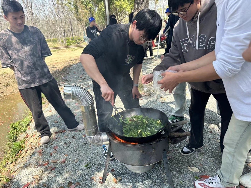 第二站是嘉興市米科軍旅園。全體同學(xué)重溫了軍訓(xùn)生活,稍息、立正、跨立,整齊的動(dòng)作、嘹亮的口號(hào)展現(xiàn)了同學(xué)們斗志昂揚(yáng)的精氣神。在教官的帶領(lǐng)下,大家在軍事實(shí)踐基地開展團(tuán)建活動(dòng),“三子棋”和“重走長(zhǎng)征路”展現(xiàn)了每一支隊(duì)伍的團(tuán)隊(duì)協(xié)作。在歡聲笑語(yǔ)中,同學(xué)們斗智斗勇,為自己的隊(duì)伍出謀劃策,爭(zhēng)取最終的勝利。中午時(shí)分,同學(xué)們進(jìn)行了一場(chǎng)別樣的野炊活動(dòng)。隊(duì)員們分工有序,有條不紊,淘米、刷鍋、生火、炒菜……沒(méi)一會(huì)兒,陣陣米飯香撲鼻而來(lái)。“我們家鄉(xiāng)沒(méi)有這樣的米飯烹制方式,這樣吃很新奇,野米飯也很好吃!”黑水同學(xué)笑著說(shuō)道。大家還一起跳起了藏族的“鍋莊舞”。同學(xué)們品嘗著自己的勞動(dòng)成果,盡情享受著野炊帶來(lái)的樂(lè)趣。