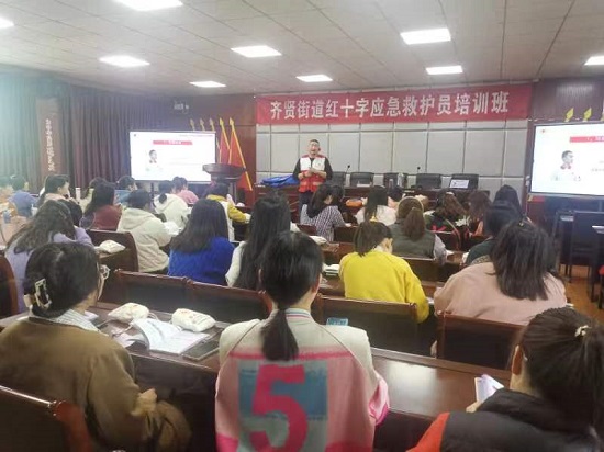 培訓開設3個班,邀請了來自柯橋區領航救護隊的省紅十字二級救護員莫偉風主講,區屬各醫共體的施佳麗、戴亞琴、胡涌鳳作助教,對學員們教授紅十字運動基本知識,心肺復蘇技能、創傷救護基本技能(止血、包扎、固定、搬運)、常見急癥現場處理、現場避險逃生知識、突發事件和意外傷害現場應對等。