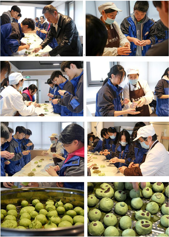 在法根老板和阿姨們的指導(dǎo)與幫助下,同學(xué)們漸漸掌握技巧,熟練完成青團(tuán)制作,并開(kāi)始了自己獨(dú)具風(fēng)格的創(chuàng)作。傳統(tǒng)美食與現(xiàn)代造型的融合,也是將傳統(tǒng)飲食文化進(jìn)行了傳承。