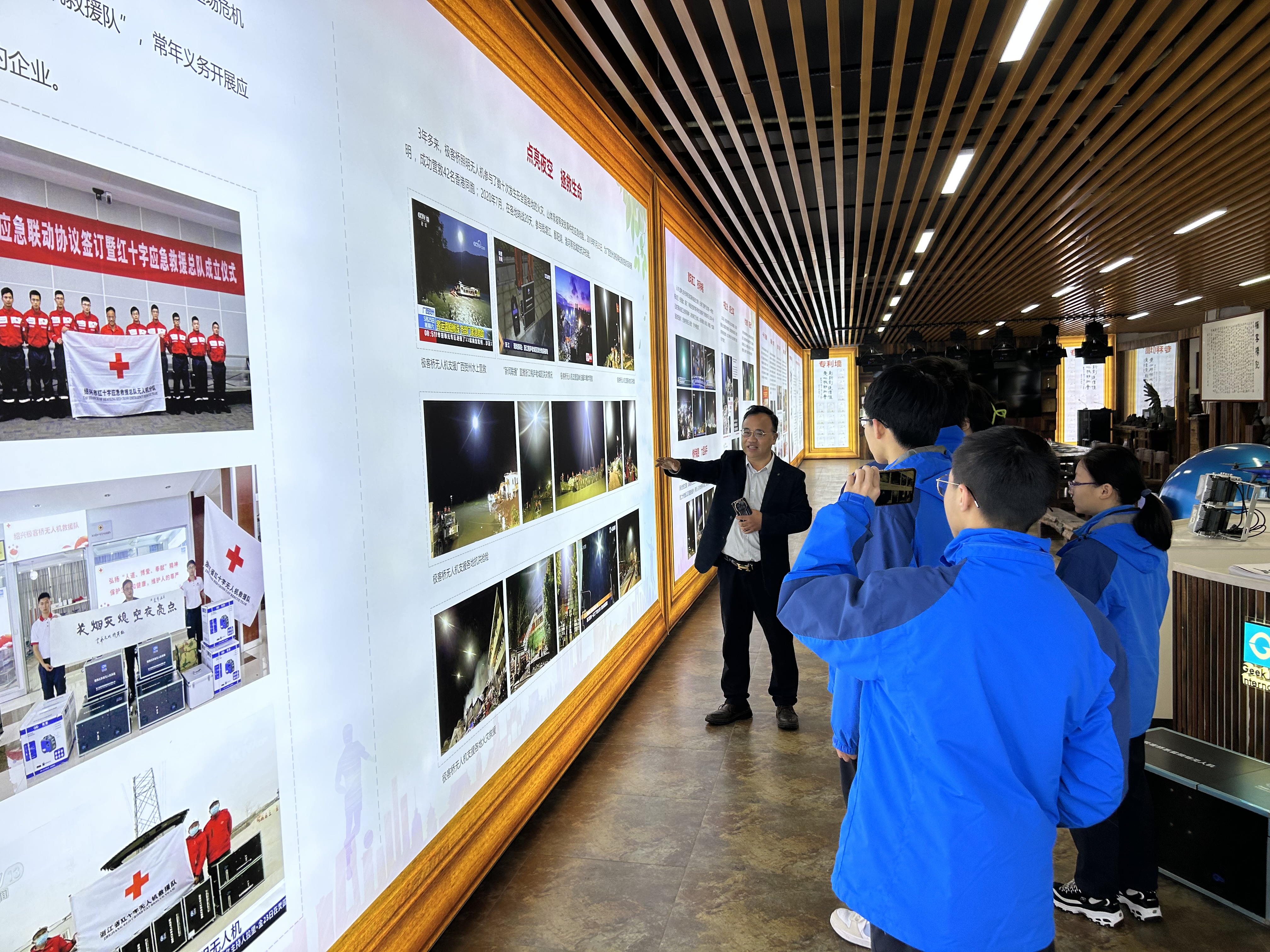 此次活動(dòng)圍繞“創(chuàng)新創(chuàng)造價(jià)值、愛(ài)心服務(wù)社會(huì)”主題展開(kāi)研學(xué)。紹興財(cái)經(jīng)旅游學(xué)校學(xué)生在校黨委書(shū)記薛水林的帶領(lǐng)下,來(lái)到了浙江極客橋智能裝備股份有限公司。在這里,同學(xué)們一睹這家高新技術(shù)企業(yè)通過(guò)八年磨一劍首創(chuàng)的極客橋照明無(wú)人機(jī),它曾先后轉(zhuǎn)戰(zhàn)火神山、香港方艙醫(yī)院,土耳其地震救援一線。