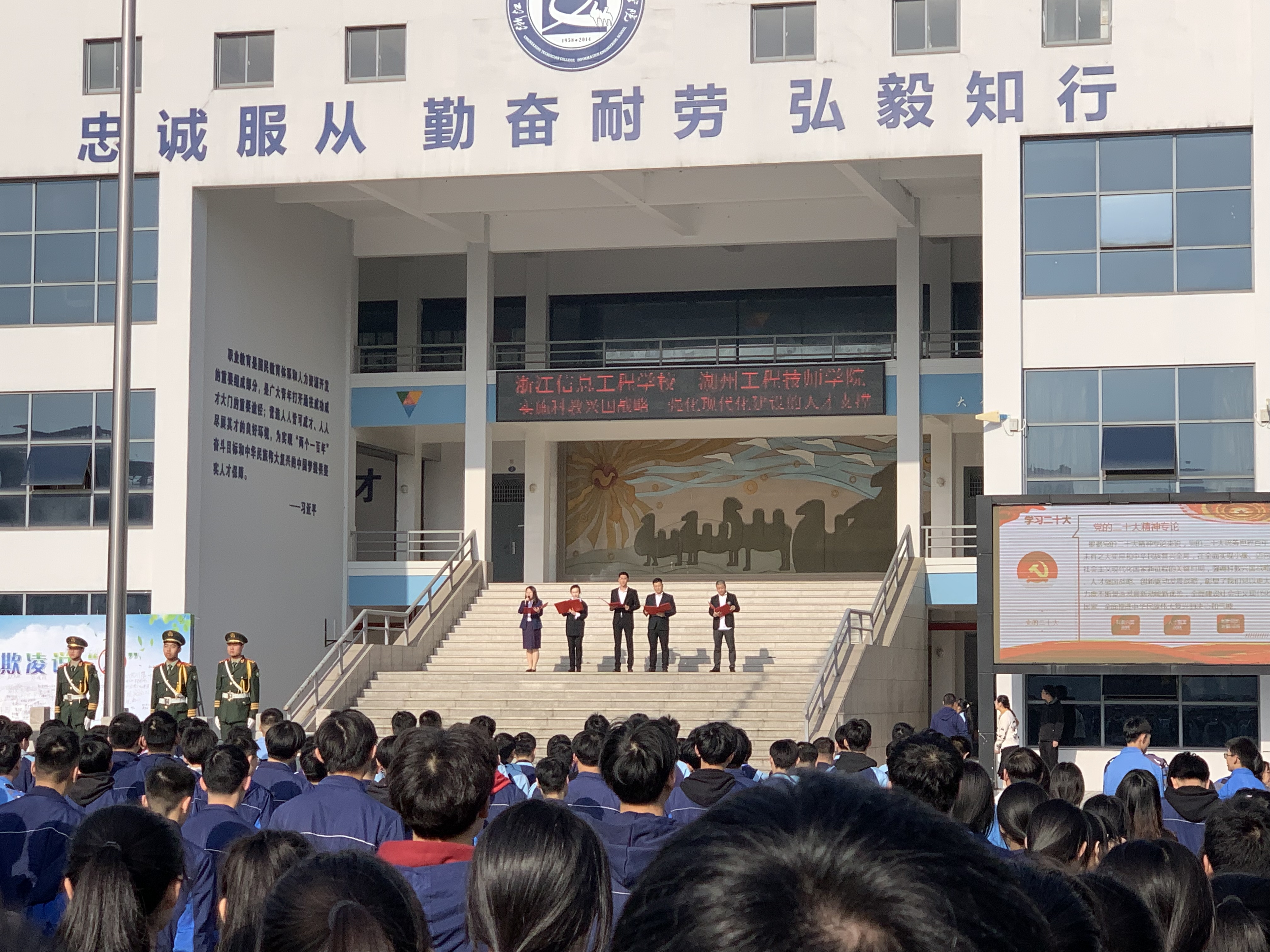 4月10日,沐浴著和煦的春風(fēng),浙江信息工程學(xué)校·湖州工程技師學(xué)院“學(xué)習(xí)黨的二十大精神”全校思政大課又迎來(lái)了新的一期,本期宣講由行政一黨支部承擔(dān),宣講主題是《實(shí)施科教興國(guó)戰(zhàn)略,強(qiáng)化現(xiàn)代化建設(shè)的人才支撐》。