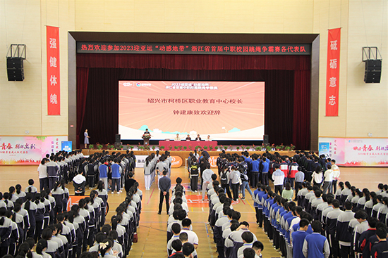 4月21日,由浙江省青少年體育運動聯合會、浙江省教育廳職成教教研室聯合主辦的2023迎亞運“動感地帶”浙江省首屆中職校園跳繩爭霸賽紹興分站賽在柯橋區職業教育中心體育館內隆重開賽。此次活動旨在更好地宣傳杭州亞運會,貫徹實施體教融合,增強中職學生體質健康,提高學生體育運動興趣,培養學生團結協作的精神。浙江省青少年體育運動聯合會會長鮑學軍,省青少年體育運動聯合會副會長羅倫,市教育局黨委委員、副總督學朱偉明,市教育局職業教育教學研究室副主任王彪,浙江省紹興市柯橋區職業教育中心校長鐘建康等領導以及柯橋區職業教育中心近500名學生一起參加活動。
