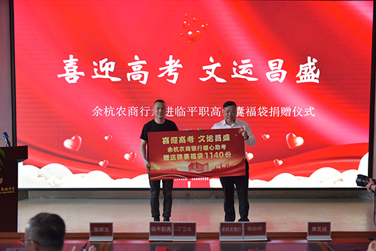 近日,余杭農(nóng)商行走進(jìn)杭州市臨平職業(yè)高級(jí)中學(xué),向臨職高三學(xué)子贈(zèng)送“喜迎高考 文運(yùn)昌盛”錦囊福袋,共1140份,福袋內(nèi)裝著透明水杯、”文運(yùn)昌盛”印章、考試通關(guān)卡、紅色T恤、文具袋、定勝糕等物品,這些物品飽含著余杭農(nóng)商行對(duì)臨平職高學(xué)子的滿滿祝福!