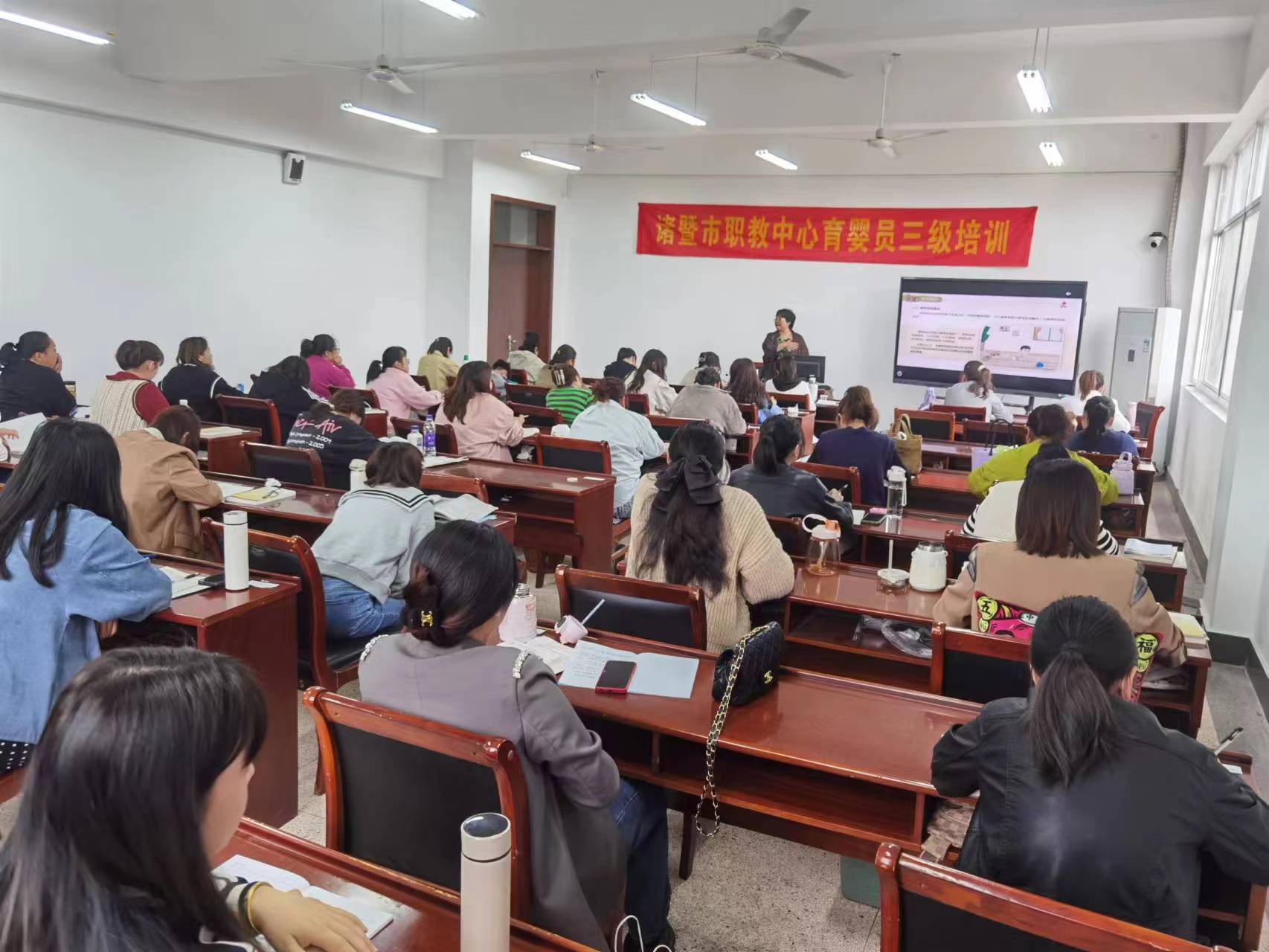 4月22日,周六,諸暨職教中心“越匠樓”三樓幾個培訓室學習技能氛圍濃厚。育嬰員、保育師、茶藝師各技能等級培訓班如火如荼地進行著。