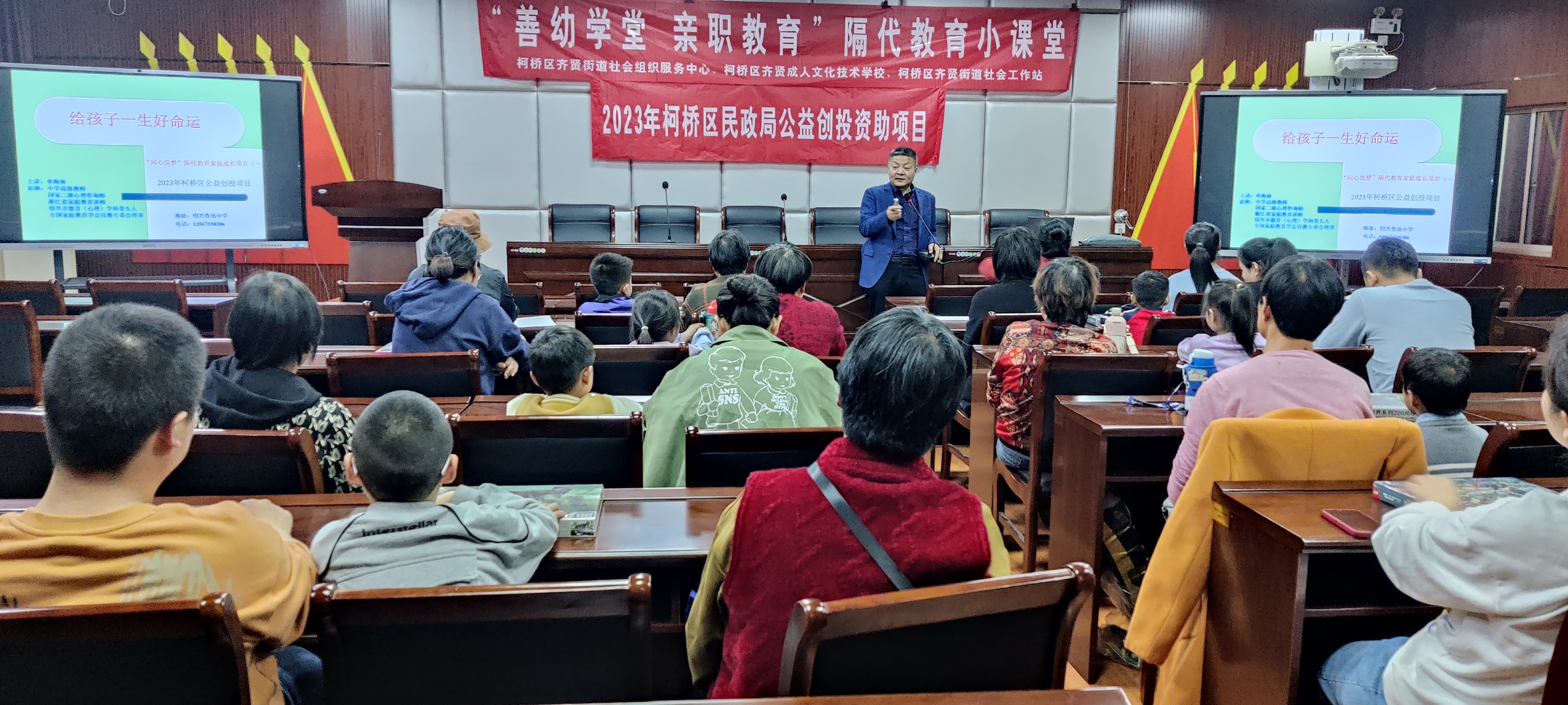 4月14日晚,齊賢成校4樓多功能廳舉辦了一堂別開生面的講座——“善幼學堂 親職教育”隔代教育小課堂。國家二級心理咨詢師、浙江省家庭教育講師、紹興市德育(心理)學科帶頭人、全國家庭教育學會宣教專委會理事、紹興市家庭教育特設工作室領銜人單海林老師親臨現場,給來自齊賢街道各村居的祖、父、孫三代同課家庭教育。