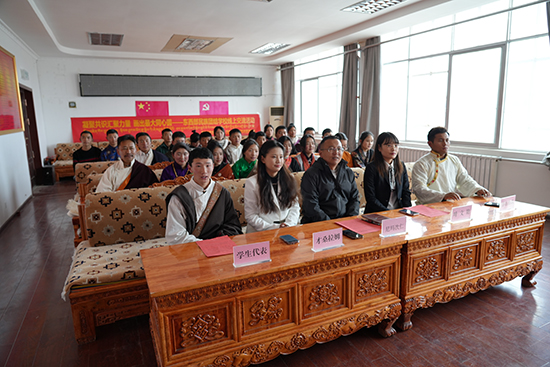 活動(dòng)第二項(xiàng),兩校教師代表交流發(fā)言。富陽(yáng)職教中心團(tuán)委副書(shū)記倪夢(mèng)霞表示,此項(xiàng)活動(dòng)的順利開(kāi)展,既加強(qiáng)了東西部的交往、交流、交融,也促進(jìn)了雙方相互了解、相互尊重、相互學(xué)習(xí)、相互幫助,把愛(ài)我中華的種子,埋在每個(gè)青少年的心靈深處,增強(qiáng)了他們對(duì)偉大祖國(guó)的認(rèn)同、對(duì)中華民族的認(rèn)同、對(duì)中華文化的認(rèn)同、對(duì)中國(guó)特色社會(huì)主義道路的認(rèn)同。讓香囊哈達(dá)結(jié)情結(jié)誼,愿團(tuán)結(jié)之花常開(kāi)長(zhǎng)盛。那曲市職業(yè)技術(shù)學(xué)校團(tuán)委書(shū)記才桑拉姆介紹了純手工制作的藏式上衣和手工編織的“烏朵”——拋石繩。她表示,做好民族團(tuán)結(jié)工作,關(guān)系到每個(gè)師生、影響每個(gè)家庭、維系整個(gè)社會(huì),是關(guān)乎社會(huì)穩(wěn)定的大事、要事。兩校教師代表進(jìn)行了深入交流,互道美好祝福。