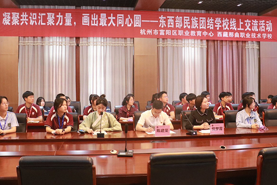 深入貫徹落實(shí)黨的二十大精神,堅(jiān)持鑄牢中華民族共同體意識(shí),促進(jìn)各民族青年交流交往交融,強(qiáng)化各民族青年對(duì)中華文化的認(rèn)同和傳承,構(gòu)筑中華民族共有精神家園,杭州市富陽(yáng)區(qū)職業(yè)教育中心和那曲市職業(yè)技術(shù)學(xué)校聯(lián)合舉辦“凝聚共識(shí),匯聚力量,共話(huà)同心圓”云上活動(dòng),兩校師生100余人參加活動(dòng)。