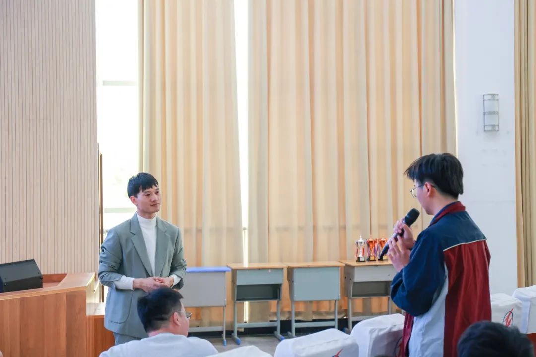 分享會后,學生們反應熱烈,積極向蔣老師提問,他都耐心地一一解答。包括:基本的汽車噴漆、可持續學習、相關比賽等等。老師們則向他請教了專業課教學問題。