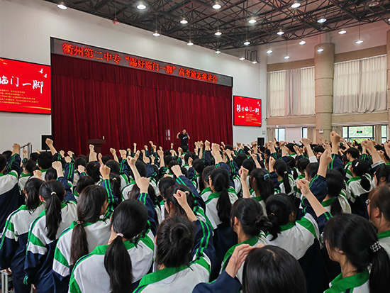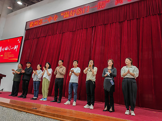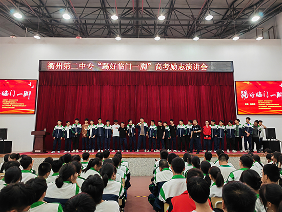 在距離高考30天的備考關(guān)鍵時刻,為幫助高三考生緩解考前壓力,做好心理調(diào)適,以最佳狀態(tài)備戰(zhàn)高考。5月5日下午,衢州第二中等專業(yè)學校邀請全國著名中、高考勵志教育專家、積極心理學和正向教育推廣人、《中國教師報》全國教師培訓基地專家團專家、汕頭大學特聘講師、杭州銘師堂教育特約金牌講師、北大邦教育集團聯(lián)合創(chuàng)始人徐躍斌老師來校舉行了一場以“踢好臨門一腳”為主題的勵志講座,全體高三學子、班主任、任課教師齊聚一堂,共同聆聽徐老師的暢談,并肩吹起沖鋒的號角。