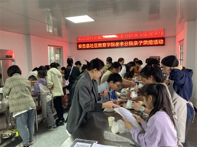 5月7日下午,安吉縣社區教育學院孝豐分院組織開展親子烘焙活動,邀請了烘焙師楊晹授課,來自孝豐鎮三眼井社區幸福鄰里的20組家庭參加了本次活動。活動內容為親子合作制作曲奇餅干。
