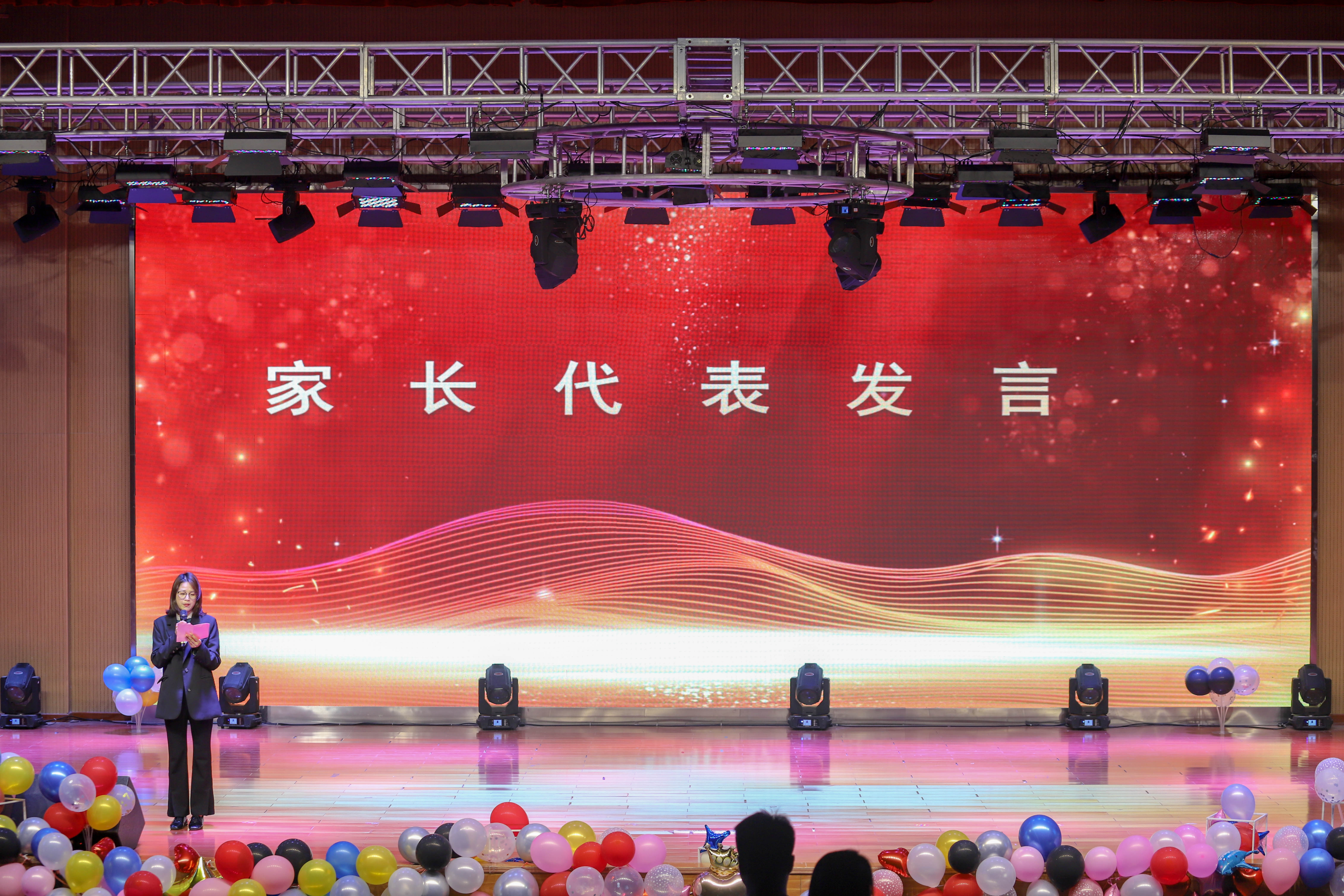 學生沈飛揚的媽媽作為家長代表發言,她感謝學校和老師們對于學生的愛護和培育,尤其感謝班主任老師的辛勤付出和陪伴堅守。祝愿老師們身體健康、工作順利、生活幸福!