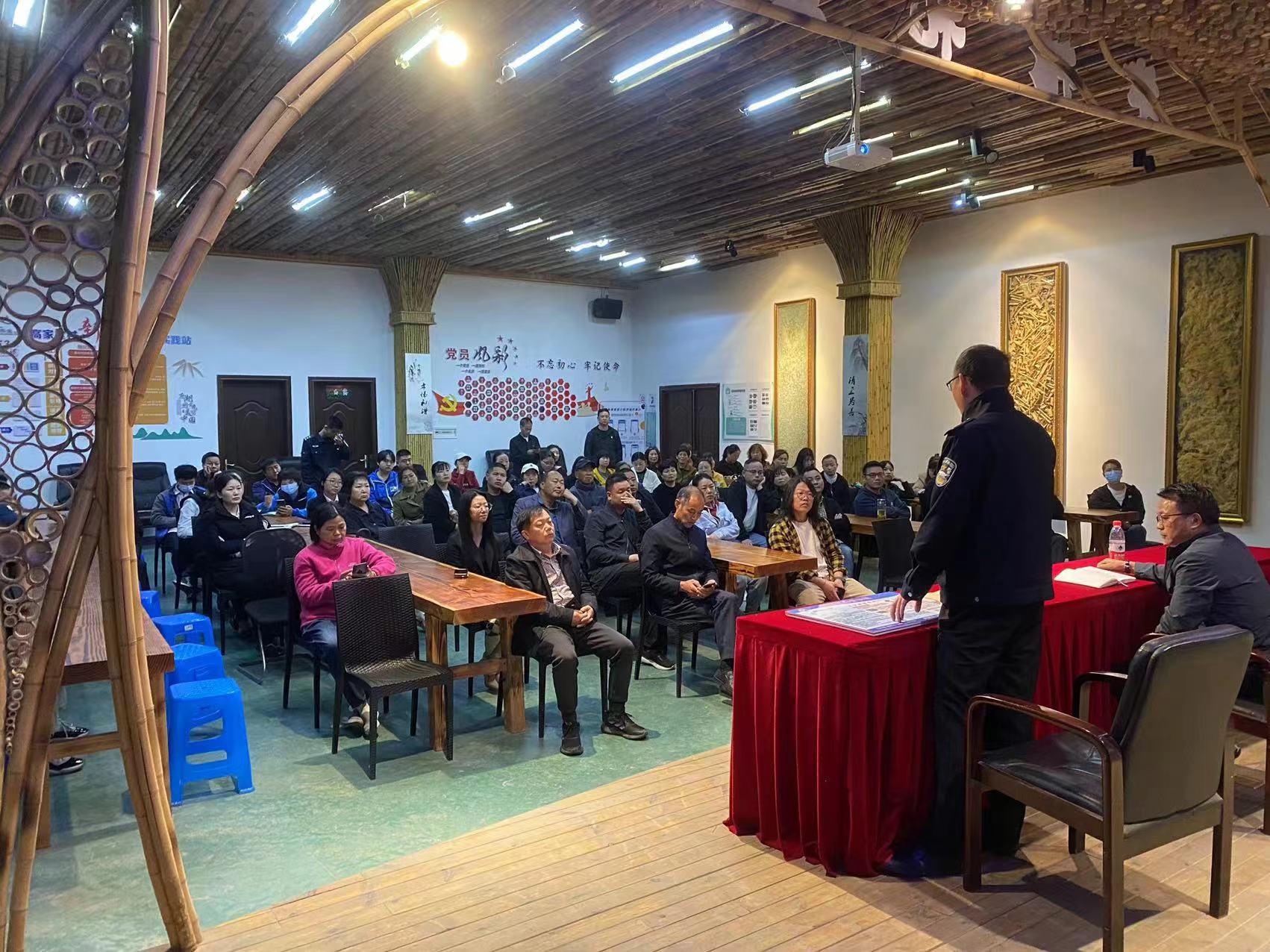 培訓(xùn)會(huì)上,受邀講座的山川派出所民警楊勝賓緊扣“5.12”這一特殊的日子,根據(jù)前段時(shí)間轄區(qū)內(nèi)民宿安全隱患的種種類(lèi)型,圍繞旅游民宿的定義、旅游民宿的基本要求與安全等級(jí)劃分、如何建設(shè)安全又高標(biāo)準(zhǔn)的鄉(xiāng)村民宿等內(nèi)容展開(kāi)耐心細(xì)致地講解。