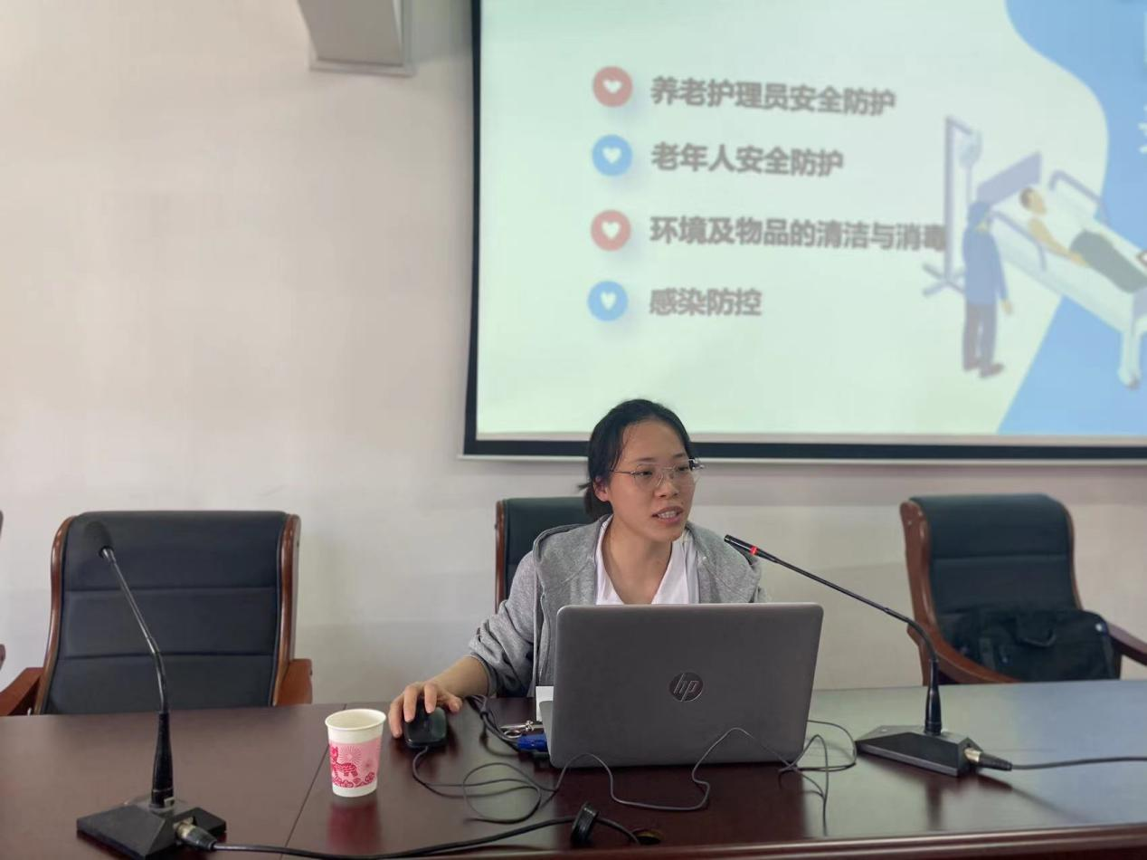 本次培訓邀請到湖州康復醫院二級護理師倪蕓老師授課。倪老師就養老護理員的就業現狀和職業前景做了簡要介紹,從生活照料、基礎護理、康復護理、心理護理四個方面入手分析了養老護理員的具體工作內容,并密切結合自身工作經歷展開具體講解,授課深入淺出、繪聲繪色。學員們積極互動,現場氣氛活躍。