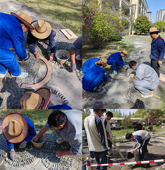 隨著中小學(xué)勞動(dòng)教育的普及,越來越多的中小學(xué)開設(shè)了勞動(dòng)教育課程。寧波建設(shè)工程學(xué)校建筑專業(yè)每星期都有四節(jié)實(shí)訓(xùn)課,每學(xué)期的實(shí)訓(xùn)項(xiàng)目也各不相同。尤其是高二,采取小班化的教學(xué)形式,分成三個(gè)實(shí)訓(xùn)項(xiàng)目,每個(gè)項(xiàng)目15人左右,通過漸進(jìn)循環(huán)式的教學(xué)模式,提升學(xué)生的技能水平。這次維修鵝卵石路的任務(wù),是學(xué)生技能從模擬實(shí)訓(xùn)到實(shí)戰(zhàn)演練的轉(zhuǎn)變。建筑學(xué)部部長(zhǎng)盛家敏說:“如果說學(xué)生在實(shí)訓(xùn)課中很好地鍛煉了動(dòng)手能力,培養(yǎng)了他們的勞動(dòng)意識(shí),那么這次維修鵝卵石路則更好地體現(xiàn)了勞動(dòng)教育的內(nèi)涵——在出力流汗中成長(zhǎng),感受勞動(dòng)的艱辛。”