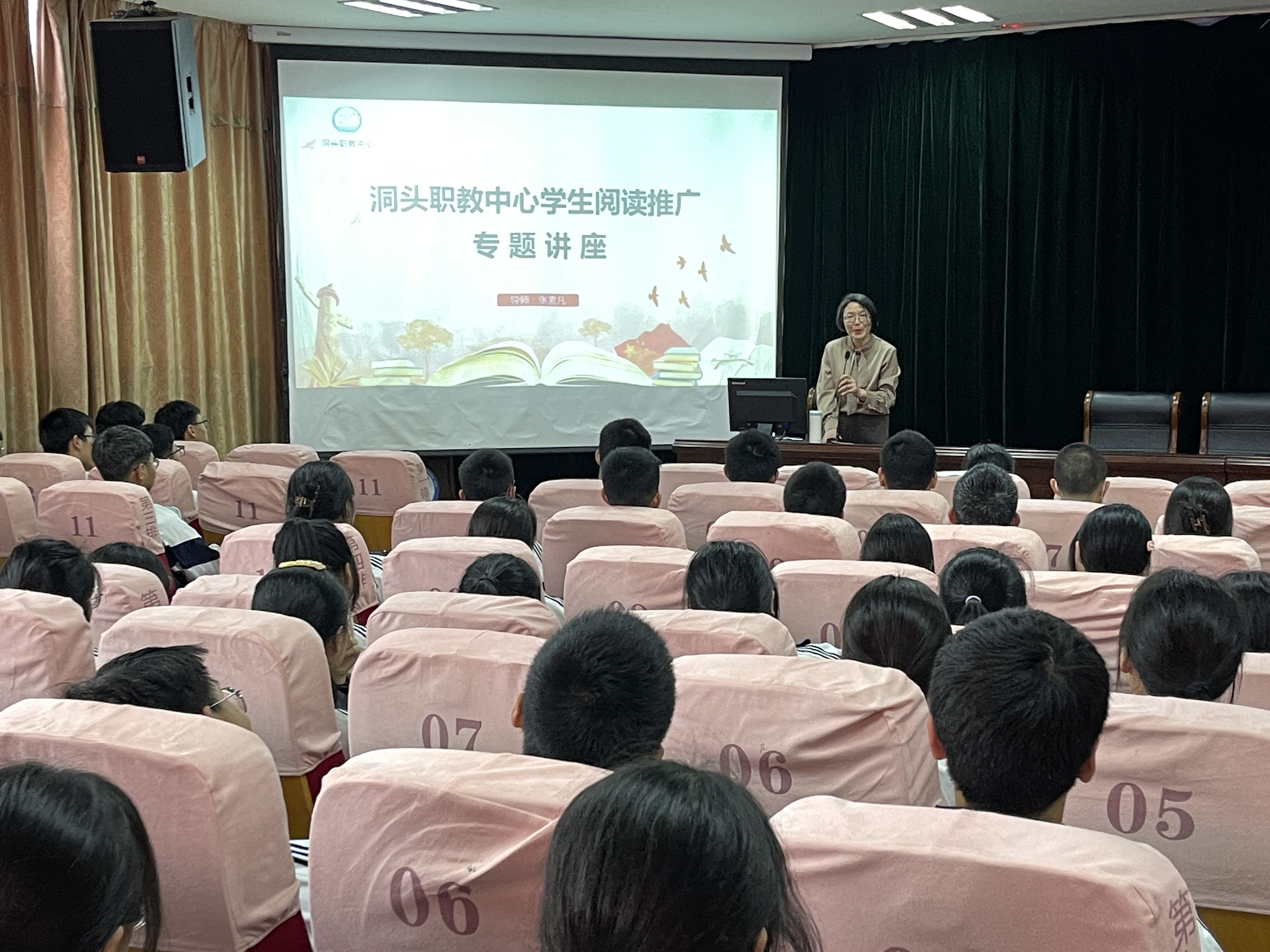 5月5日,洞頭區教師發展中心張素凡老師,在洞頭區職教中心212會議室,進行了一場學生閱讀推廣專題講座,師生們齊聚一堂,認真聆聽了張老師的課程。