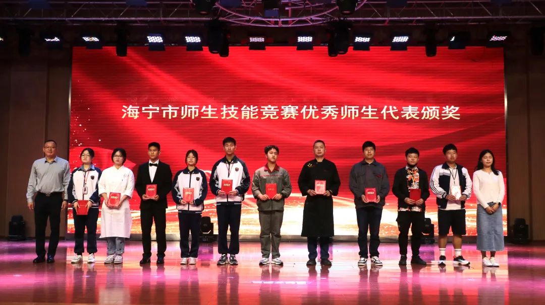 本次活動正值海寧市職業(yè)院校技能節(jié),海寧市教育局副局長馬海濱為2023年海寧市職業(yè)教育活動周暨職業(yè)院校技能節(jié)中取得各賽項(xiàng)一等獎的師生代表頒獎。