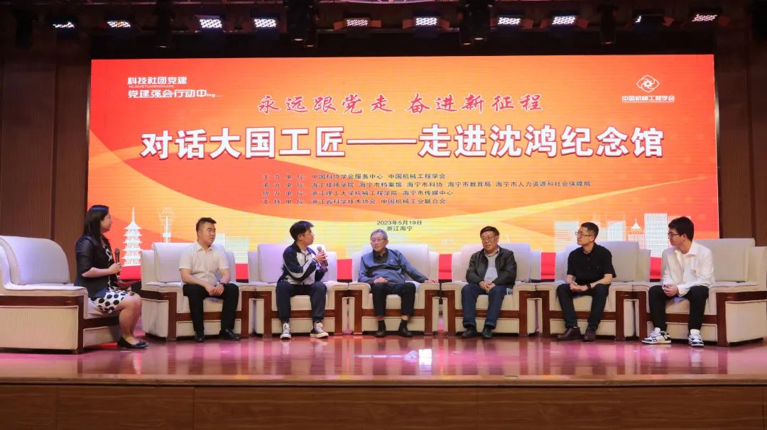 5月19日下午,由中國科協(xié)學(xué)會服務(wù)中心、中國機(jī)械工程學(xué)會共同主辦的“永遠(yuǎn)跟黨走,奮進(jìn)新征程”黨建強(qiáng)會活動“對話大國工匠——走進(jìn)沈鴻紀(jì)念館”隆重舉行。活動特邀中國科學(xué)院院士、機(jī)械工程專家沈鴻先生之子吳英老師,全國勞動模范、全國“五一”勞動獎?wù)隆⑷珖鴥?yōu)秀共產(chǎn)黨員、全國道德模范、全國優(yōu)秀科技工作者,中國機(jī)械工程學(xué)會原副理事長、原副監(jiān)事長包起帆教授兩位大國工匠講述工匠故事。中國科協(xié)科技社團(tuán)黨委副書記劉桂榮、浙江省科協(xié)副主席曾肖芃通過線上出席活動,中國機(jī)械工程學(xué)會副秘書長陳超志,浙江省機(jī)械工程學(xué)會秘書長許少寧,浙江理工大學(xué)機(jī)械工程學(xué)院黨委副書記陸秋萍,海寧市科協(xié)黨組成員、副主席張祺,海寧市檔案館副館長滕輝,沈鴻研究會理事長、海寧技師學(xué)院黨委書記、院長陳海鋒共同出席本次活動。
