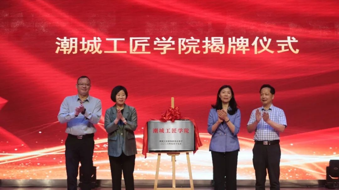 5月19日上午,海寧技師學(xué)院沈鴻紀(jì)念館報(bào)告廳隆重舉行潮城工匠學(xué)院揭牌儀式。嘉興市政協(xié)委員工委主任秦泓,海寧市政協(xié)副主席王靜霞,海寧市政協(xié)社法委副主任陸群華,海寧市政協(xié)委員工委副主任周張弦,潮城工匠政協(xié)委員會客廳牽頭委員王玉良、張克西及海寧市教育局副局長馬海濱,海寧技師學(xué)院黨委書記、院長陳海鋒出席活動。