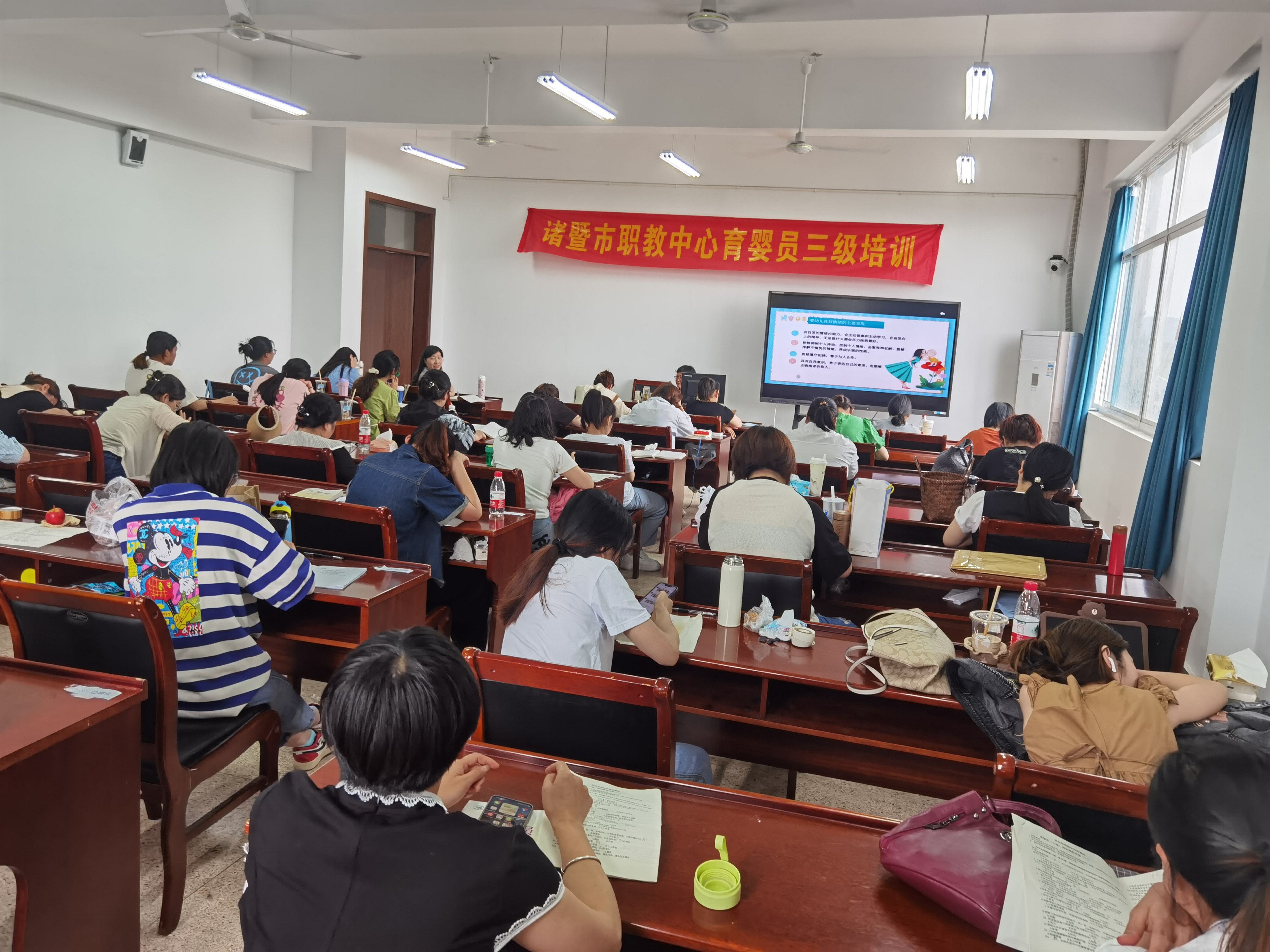 5月21日,在諸暨職教中心“越匠樓”,兩個“育嬰師(高級)”培訓班和一個“茶藝師(中級)”認定考核班正在緊張有序地開展。