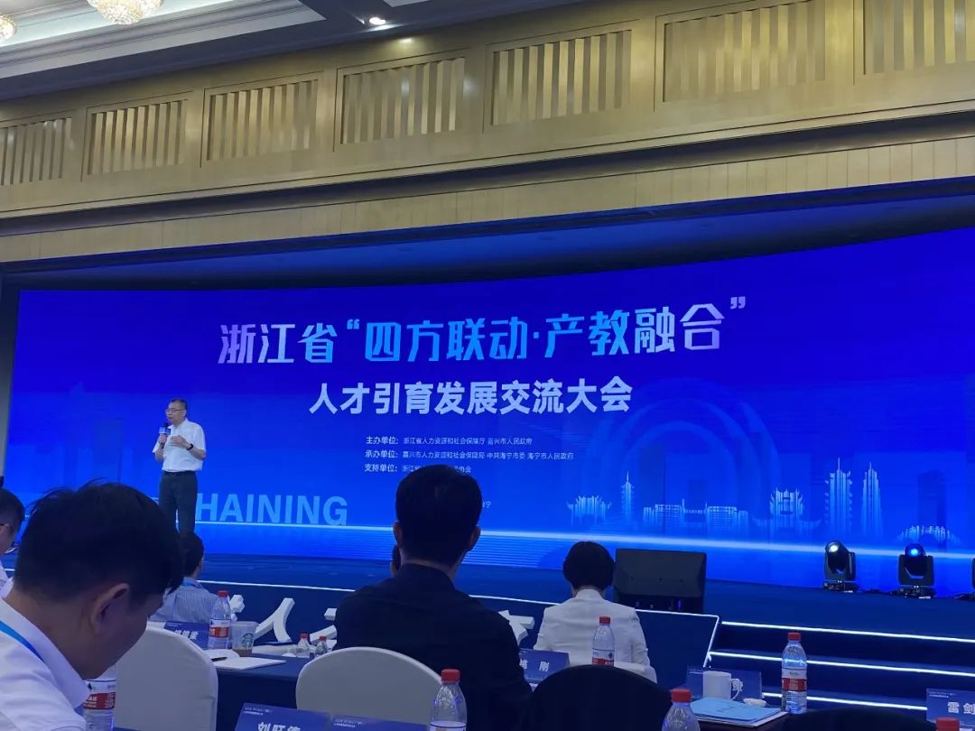 5月19日下午,永康五金技師學院應邀赴海寧參加由浙江省人力資源和社會保障廳和嘉興市人民政府主辦的浙江省“四方聯動·產教融合”人才引育發展交流大會,并被授予浙江省“四方聯動·產教融合”服務聯盟成員單位稱號。