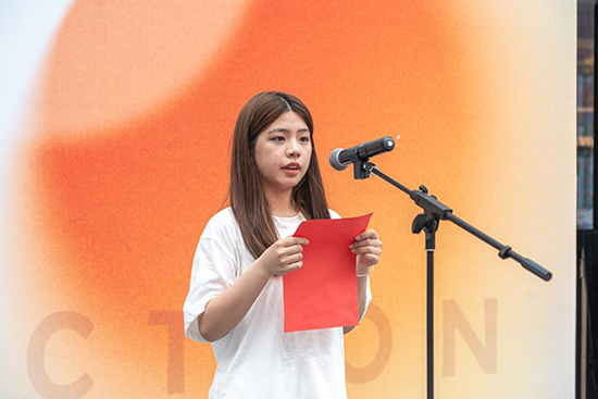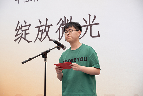 中職藝術203班史超怡、大專22廣告沈鑫磊作為學生代表上臺發(fā)言,在這個充滿創(chuàng)造力和無限想象力的舞臺上,他們用畫筆,描繪出了絢爛奪目的青春色彩。