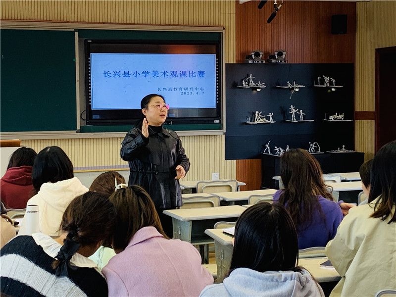 觀摩課例展示,提升課堂技能。全體學(xué)員分成小學(xué)、中學(xué)組分別到長(zhǎng)興一小、長(zhǎng)興林城中學(xué)觀摩了來(lái)自湖州市6位名師的精彩課例。長(zhǎng)興縣美術(shù)教研員高穎老師進(jìn)行了觀課報(bào)告微講座,并組織學(xué)員進(jìn)行美術(shù)觀課評(píng)論比賽。名師們基于“雙減”“新課標(biāo)”理念背景下的生動(dòng)課例,為學(xué)員們提供了互相學(xué)習(xí)、交流的機(jī)會(huì)。
