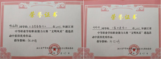 2023年5月27日,浙江省湖州藝術與設計學校工美專業部楊涵韻、聞詩鴻同學在2023年浙江省中等職業學校文明風采作品現場創作活動中,以扎實的非遺專業技能制作與展示,獲得優秀作品榮譽獎項。