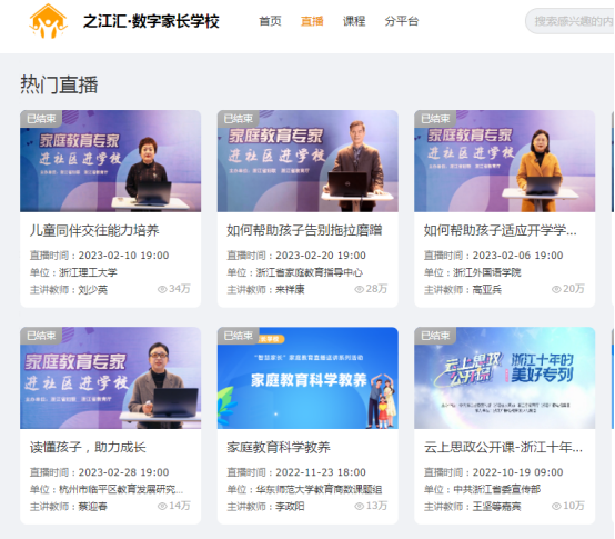 借力之江匯平臺,重組線上課程,針對每年級孩子的心理特點和家長的關注點,篩選出階梯式的家長培訓課程。