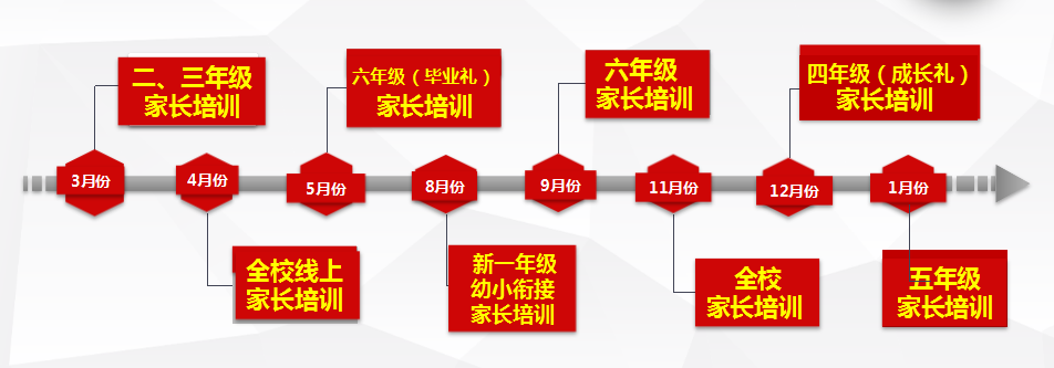 一是家長培訓有規劃,構建“長短結合”的培訓機制。學校制定了《實驗小學教育集團家長成長規劃》,明確行動路線圖。其次著力短期,分步實施,制定每學年培訓計劃。