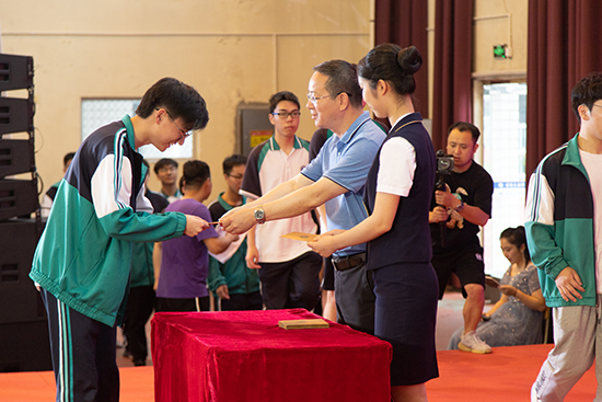 伴隨著激昂的音樂(lè),現(xiàn)場(chǎng)進(jìn)行校旗接力儀式。畢業(yè)生張仕杰莊重地接過(guò)楊校長(zhǎng)手中的校旗,再傳遞給高一學(xué)弟,象征著新舊傳承,揚(yáng)帆精神的傳遞。不久前,張仕杰剛剛獲得2023年浙江省中等職業(yè)學(xué)校職業(yè)能力大賽“航空服務(wù)”項(xiàng)目一等獎(jiǎng)第一名。“真的非常感謝學(xué)校和我的老師們,是老師們辛勤無(wú)私的付出,讓我們創(chuàng)造了一個(gè)個(gè)不可能,雖然畢業(yè)了,我會(huì)永遠(yuǎn)想念你們!”他說(shuō)。