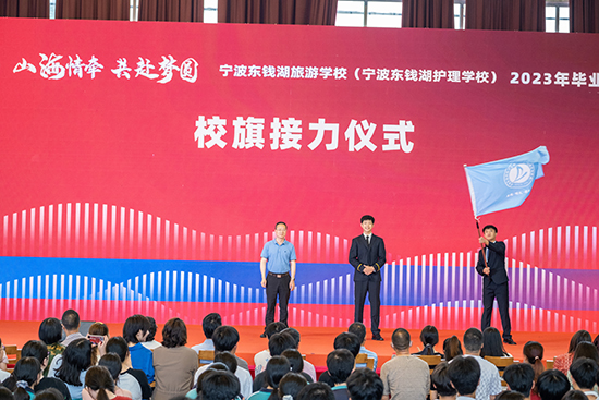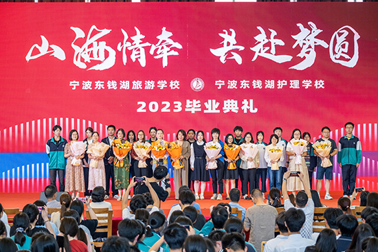 “同學(xué)們,希望你們不舍夢(mèng)想、不忘情懷,強(qiáng)大信念、不忘擔(dān)當(dāng),提升格局、保有原則,照亮自己的人生前程。母校是你們起航的港灣、騰飛的翅膀,請(qǐng)別忘記,母校會(huì)永遠(yuǎn)牽掛、關(guān)注、支持和祝福你們!”東錢(qián)湖旅游學(xué)校校長(zhǎng)楊海如將發(fā)自肺腑之寄語(yǔ)送給即將“遠(yuǎn)行”的畢業(yè)生們。