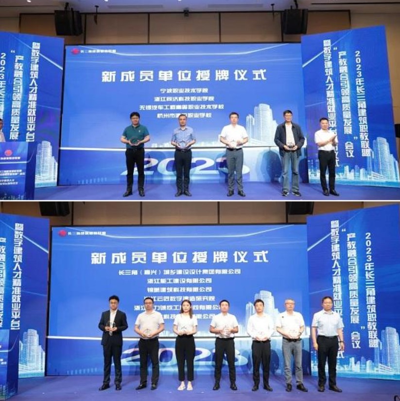 嘉興市教育局、嘉興市住房和城鄉建設局領導分別為新加盟的職業院校及企業成員單位授牌。聯盟單位已達34家,新鮮血液的加入,也為聯盟高質量發展增添更多的動力與可能。