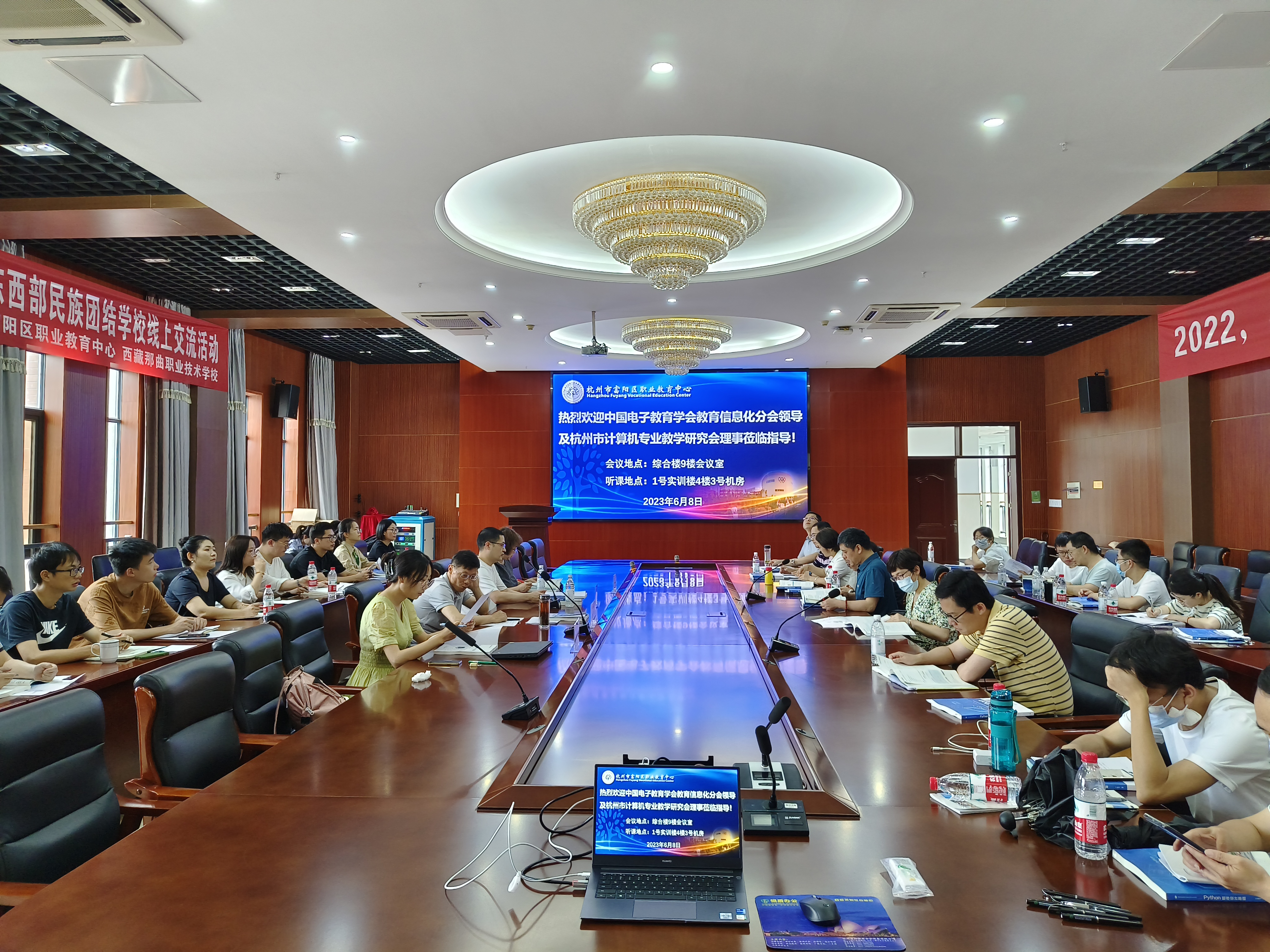 此次活動共吸引全市15所學校30余位計算機專業教師參與公開課聽評課交流、教材設計與教學方法研討、教材建設與編寫交流等系列活動。杭州市教科院教研員呂宇飛老師主持會議,電子工業出版社社長關雅莉,編輯部老師鄭小燕、張廣出席會議。