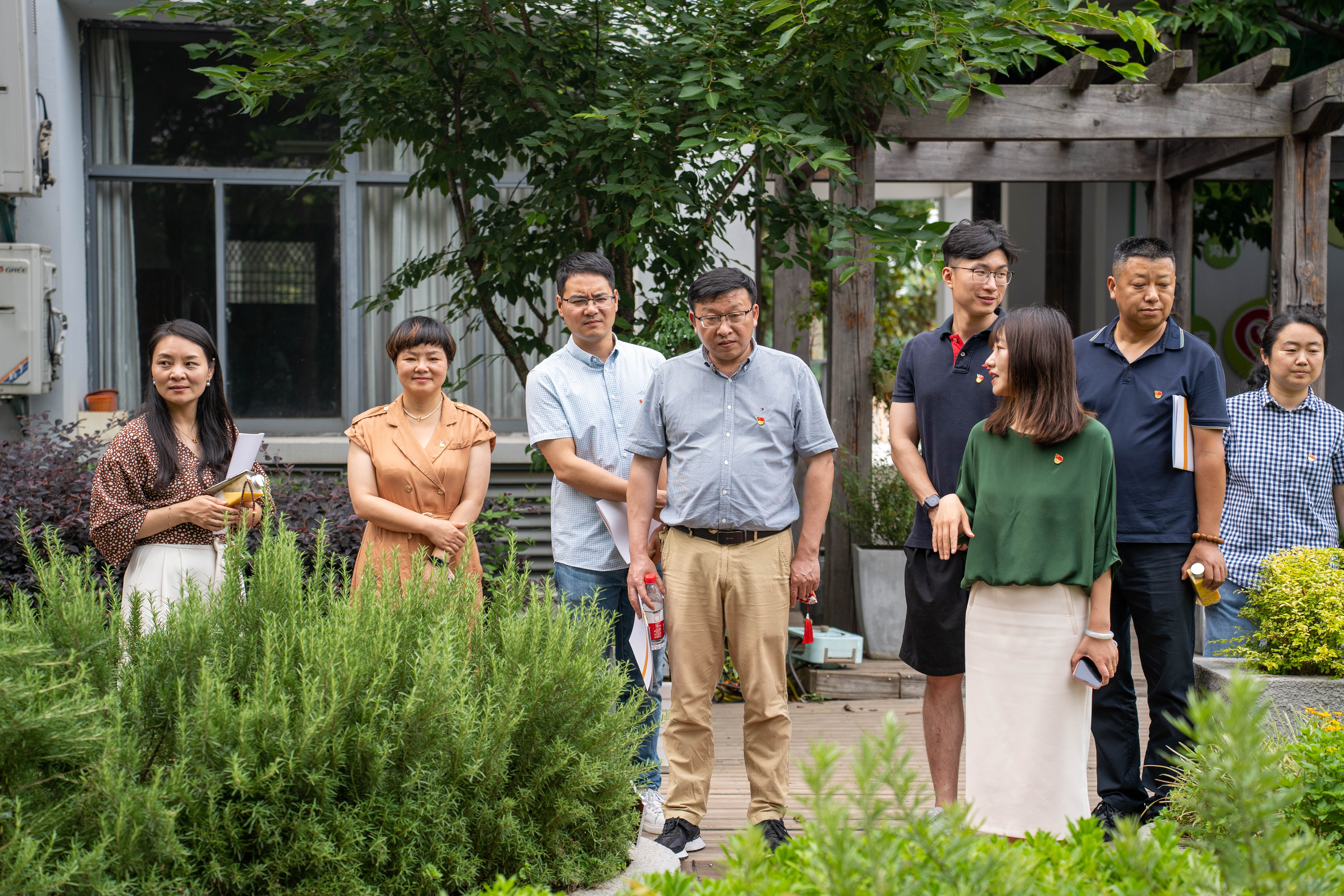 曾處長一行在學校黨委副書記、副校長張建霞和黨委委員、副校長湯方榮的陪同下,走進職業與心理發展中心。行政二黨支部書記陸婷老師為大家介紹了學校的心理中心各個功能室和室外園藝心理中心,并詳細介紹支部“心育共富”特色品牌的由來與品牌輻射作用。大家駐足觀看由教育康復學校韋老師給學校新團員帶來的手語課堂,體驗了AI情緒宣泄交互系統、智能身心放松系統等心理設備,在園藝心理中心感受了大自然帶給人類在嗅覺、味覺、聽覺、視覺、意覺等多感官上的饋贈。心靈花園中,支部宣傳委員楊育萍老師正帶著青春健康同伴社同學和教育康復學校的學生制作端午香囊;冥想區內,專職心理教師管惠瑜正帶著同學們進行冥想體驗…… 黨員教師們通過心育形式促進青少年精神共富滿懷熱忱,并充分付諸工作實踐。