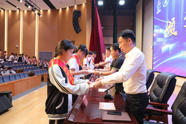 梁華霖宣讀第八屆“剛泰杯”技能節技能比賽獲獎名單?,F場領導為獲得“技能之星”和“一等獎”的同學頒發獎狀。