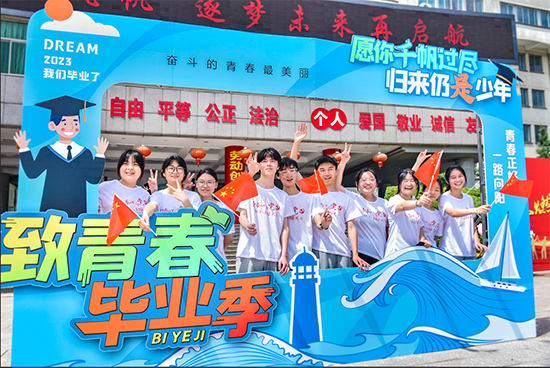 “希望同學們明白‘志向遠大,接受平凡;致敬美好,熱愛生命;無用只用,方為大用’這三句話的深刻含義,在今后的人生征程上,紅心向黨,揚起風帆,以責任、匠心和夢想為引領,逐夢未來再啟航!祝福所有的畢業(yè)生前程似錦,夢想成真!”畢業(yè)典禮上,金華實驗中學黨總支書記、校長俞秀玲在2023屆畢業(yè)生的“最后一課”深情寄語。