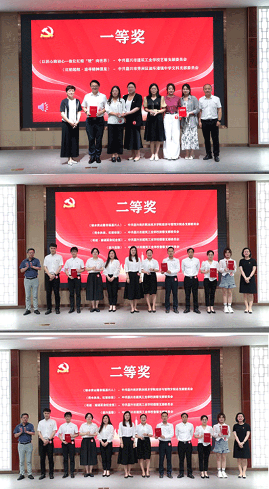 比賽角逐出一等獎2項,二等獎4項,三等獎5項。中共嘉興市建筑工業學校藝馨支部委員會選送的《以匠心致初心——他讓紅船“駛”向世界》和中共嘉興市秀洲區油車港鎮中學文科支部委員會選送的《紅船起航·追尋精神源泉》斬獲一等獎。