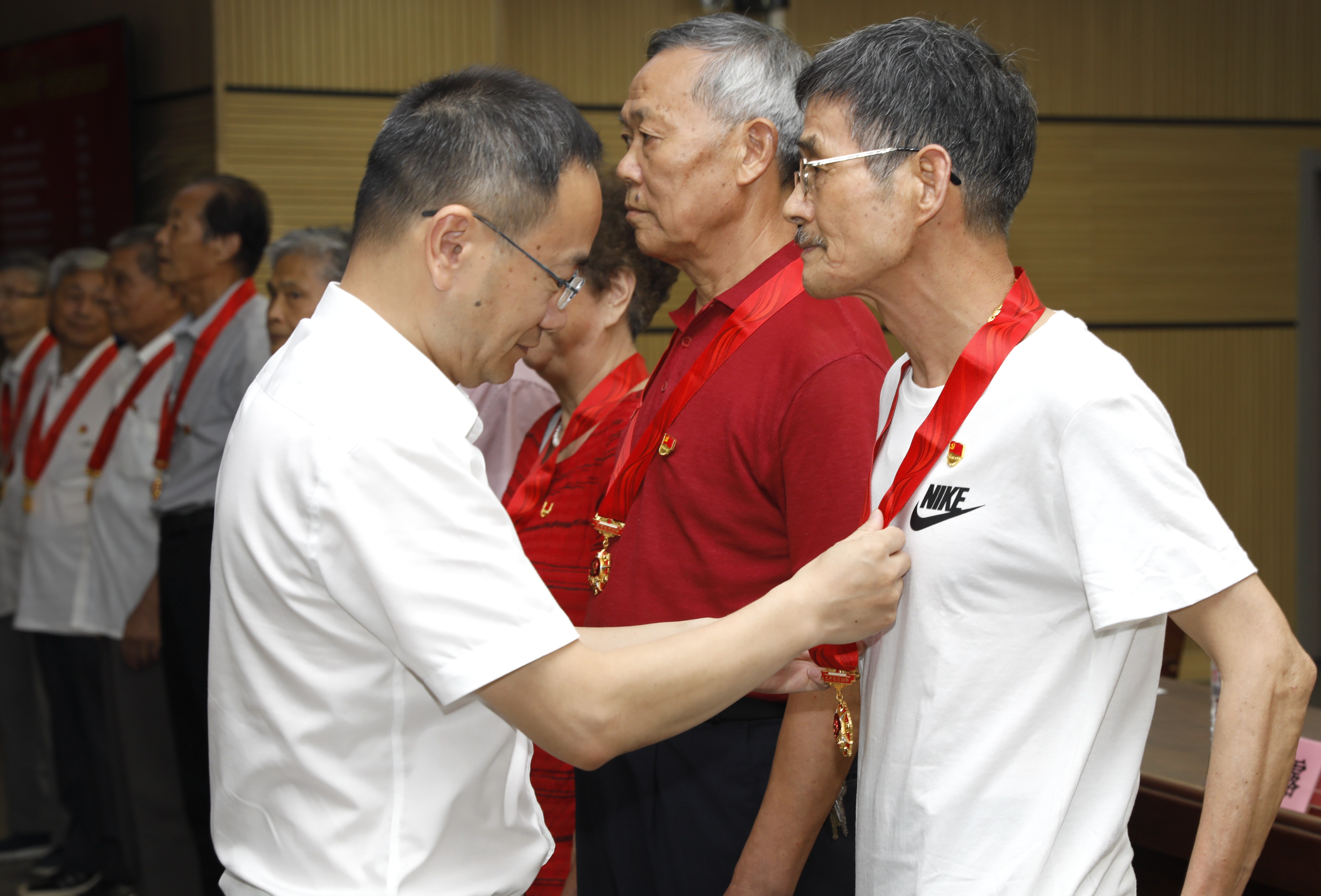 海寧市教育局黨組書記胡孝明為海寧職高退休教師李明授“光榮在黨五十年”榮譽勛章。1972年8月,李明在部隊加入中國共產黨,轉業來到海寧職高任教體育,在職時體育教學兢兢業業,為學校發展出謀劃策;退休后依然不忘學習,時刻關心學校發展。接過“厚重禮物”,李老師手撫紀念章激動地表示,感謝黨組織的關懷。